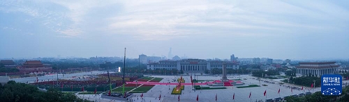 9月3日清晨拍攝的天安門(mén)廣場(chǎng)。(新華社記者 朱崢 攝)