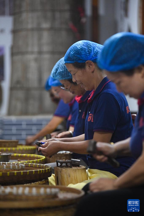 9月9日,在臨安龍崗鎮(zhèn)一家山核桃生產(chǎn)企業(yè),工作人員通過(guò)手敲山核桃取整仁。(新華社記者 翁忻旸 攝)
