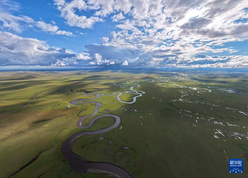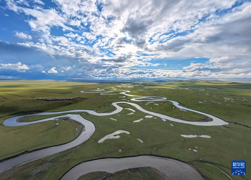 9月14日拍攝的內(nèi)蒙古呼倫貝爾市陳巴爾虎旗草原上的莫爾格勒河(無人機(jī)照片)。(新華社記者 貝赫 攝)