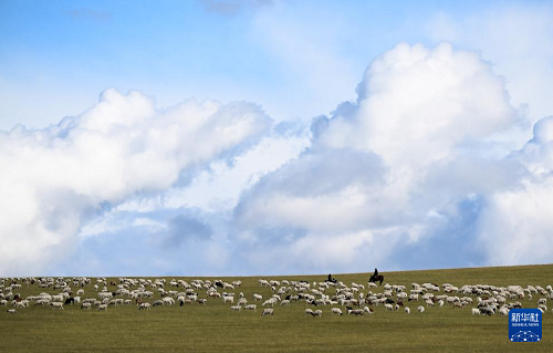 9月14日,牧民在內(nèi)蒙古呼倫貝爾市陳巴爾虎旗草原上放牧。(新華社記者 貝赫 攝)