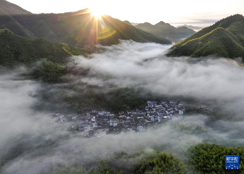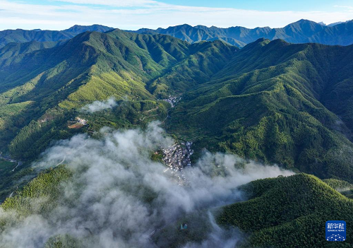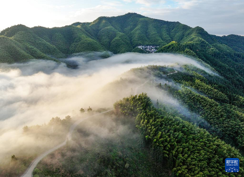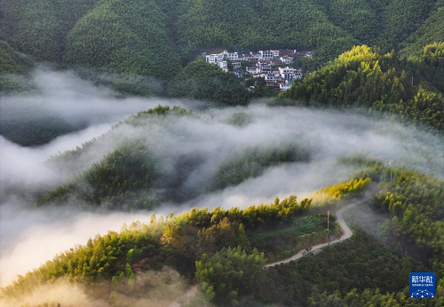 10月16日,秋雨初歇的安徽省黃山市黟縣宏村鎮(zhèn)木坑竹海景區(qū)云海涌動(dòng),縈繞于漫山竹林之中,鱗次櫛比的徽派民居與流動(dòng)的云霧交織,宛若詩(shī)意仙境。