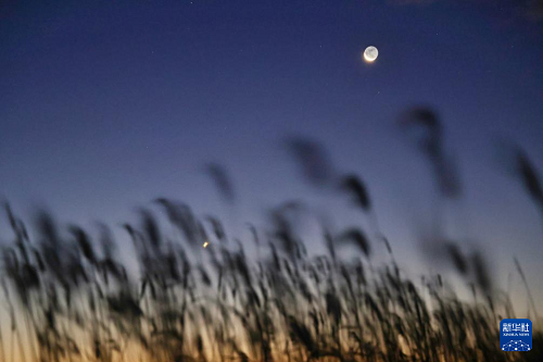 10月20日在黑龍江省齊齊哈爾市拍攝的啟明星伴月。(新華社發(fā) 王勇剛 攝)