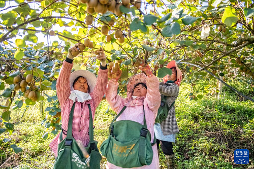 10月23日,農(nóng)民在云南省文山壯族苗族自治州西疇縣國(guó)家石漠公園獼猴桃種植基地采摘獼猴桃。(新華社發(fā) 熊平祥 攝)
