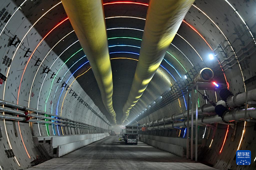 11月27日拍攝的津?yàn)H高鐵津沽海河隧道。(新華社記者 李然 攝)