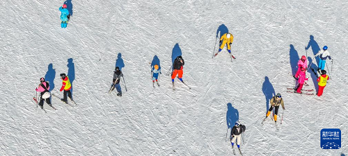 12月6日,滑雪愛好者在黑龍江省亞布力滑雪旅游度假區(qū)雪場(chǎng)體驗(yàn)滑雪(無人機(jī)照片)。(新華社發(fā) 原勇 攝)