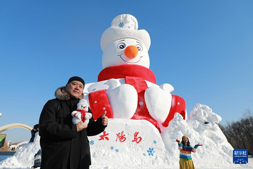 哈爾濱太陽島雪博會“雪人先生”亮相