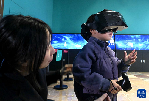 1月13日,參觀者在河北博物院數(shù)字互動體驗展中體驗互動。(新華社發(fā) 陳其保 攝)