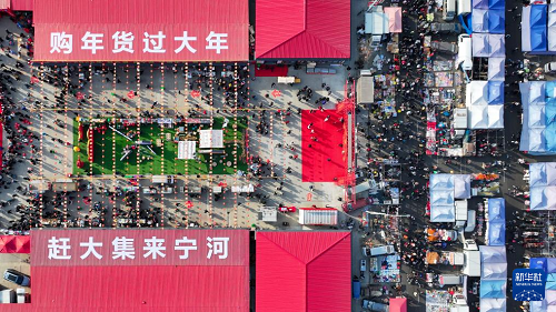 這是1月26日拍攝的天津蘆臺(tái)大集(無人機(jī)照片)。(新華社記者 孫凡越 攝)