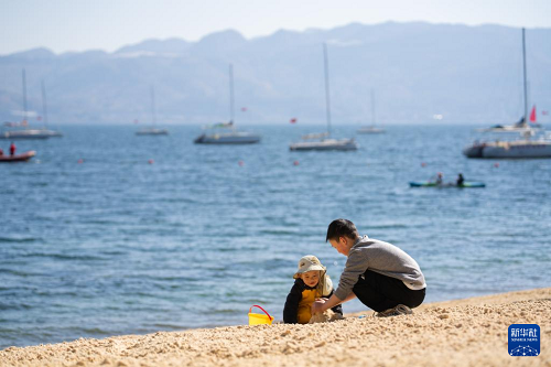 1月27日,小朋友在云南省玉溪市撫仙湖畔玩耍。(新華社記者 高詠薇 攝)