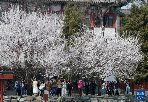 3月16日,游客在北京北海公園拍攝照片。(新華社記者 羅曉光 攝)