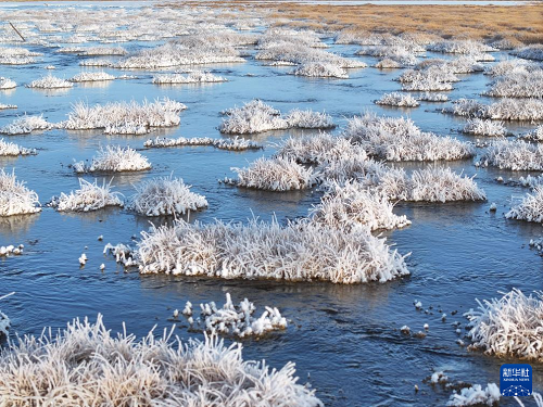 春回大地,位于甘肅省阿克塞哈薩克族自治縣阿勒騰鄉(xiāng)的哈爾騰河冰雪消融,初現(xiàn)生機(jī)。