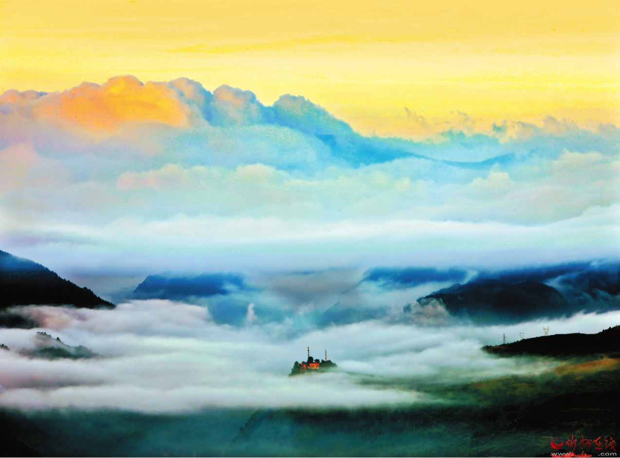 站在高山之巔,徐徐浮動(dòng)、漫無邊際的云遙掛在山水間,柔潤似水、渾然天成,變幻莫測(cè)、瑰麗壯觀。