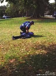 一名目擊導游說:“剛才有兩個客人在悉尼草坪上方便,讓警察看見了。警察追他們,他們提著褲子跑。他們惱羞成怒,要打警察。警察一個過肩摔,把一個男的摔地上骨折了?,F(xiàn)在救護車,警車都過來了?!?/p>