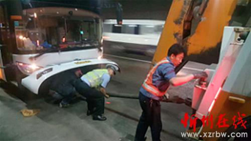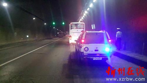 2017年5月20日14時(shí)30分許,高速二支隊(duì)九大隊(duì)巡邏民警翟躍、郭騏源在巡邏至五保高速鳳凰嶺隧道忻州方向時(shí),發(fā)現(xiàn)一輛大巴車停在應(yīng)急車道上,其中部分車身騎壓在行車道上,隧道旁邊站滿了人,考慮到正處國(guó)際旅游日的返程高峰時(shí)段,路面車流量較大,極易引發(fā)二次事故,造成人員傷亡,巡邏民警一方面抓緊開始做好防護(hù)設(shè)施,一方面上前了解情況,得知這輛大巴車是從五臺(tái)山去往河南方向,車上拉了40多名平均年齡五十歲左右的中老年游客,因發(fā)動(dòng)機(jī)出了故障壞在路上。