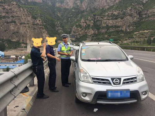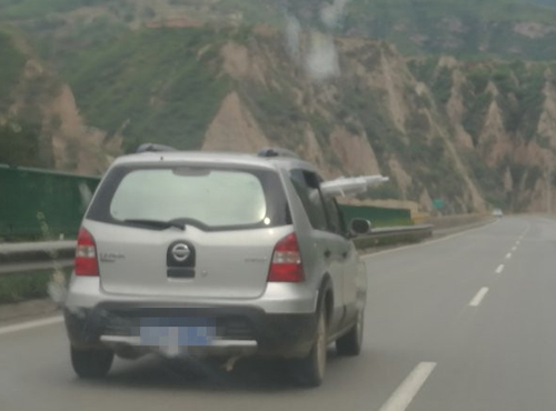 2017年7月11日16時許,高速二支隊九大隊民警王帥、孔祥昌巡邏至轄區(qū)鳳凰嶺隧道附近時,發(fā)現(xiàn)一輛銀灰色尼桑轎車從警車旁邊疾馳而過,民警下意識一看,發(fā)現(xiàn)此車副駕駛窗戶伸出一些棍狀物體,存在著極大的行車安全隱患。