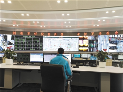 杭州九峰垃圾焚燒發(fā)電廠中控室,工作人員通過電子屏幕實(shí)時(shí)監(jiān)控各個(gè)區(qū)域。本版攝影/新京報(bào)記者 黃哲程
