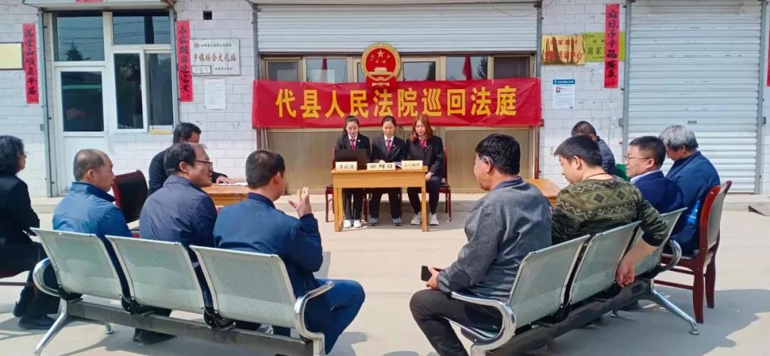 “現(xiàn)在開庭!”代縣磨坊鄉(xiāng)南家寨村村委會前,巡回法庭正在庭審,通過調解解決矛盾糾紛的同時,還給群眾上了一堂生動的法治教育公開課。