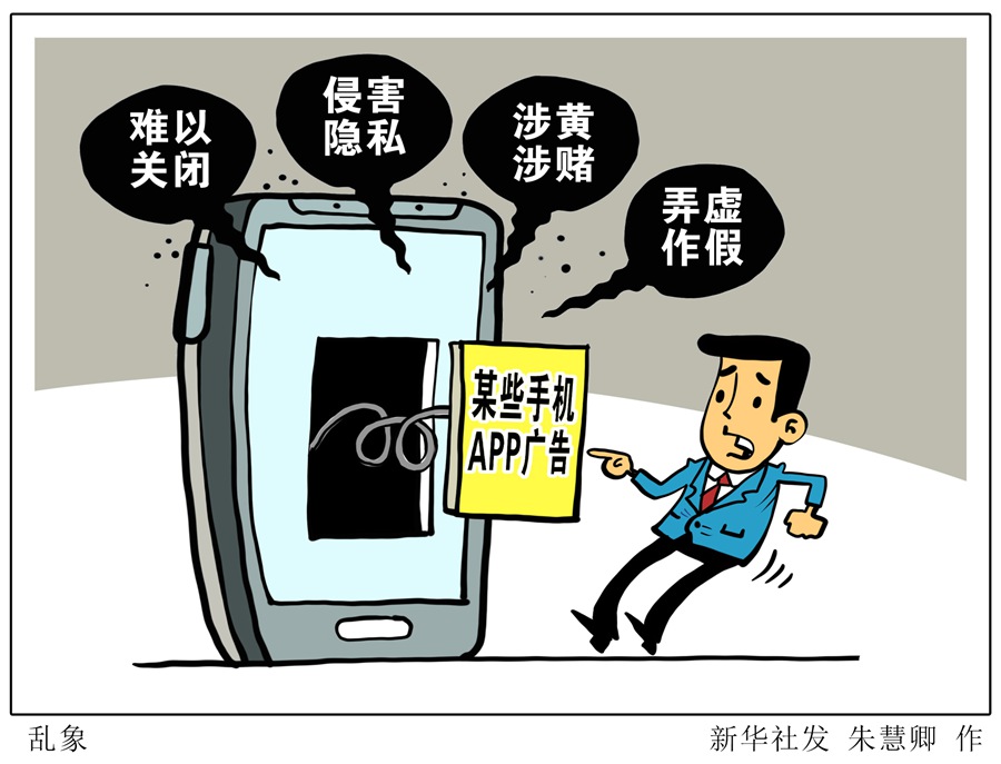 記者調(diào)查發(fā)現(xiàn),當(dāng)前手機(jī)APP廣告難以關(guān)閉、侵害隱私、涉黃涉賭、弄虛作假等問(wèn)題仍屢禁不止,治理力度不能減弱。