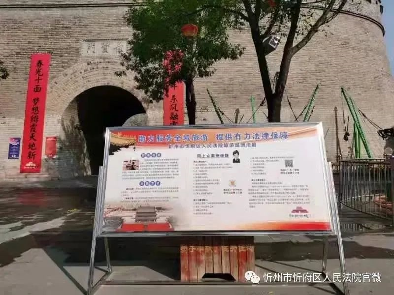 隨著我市旅游業(yè)迅猛發(fā)展,來自全國各地的游客不斷增加,為更好地助力忻府區(qū)旅游業(yè)提檔升級,滿足人民日益增長的多元司法需求,國慶黃金周期間,忻府區(qū)法院在忻州古城內設立旅游巡回法庭宣傳展板,為游客提供導訴指南服務。