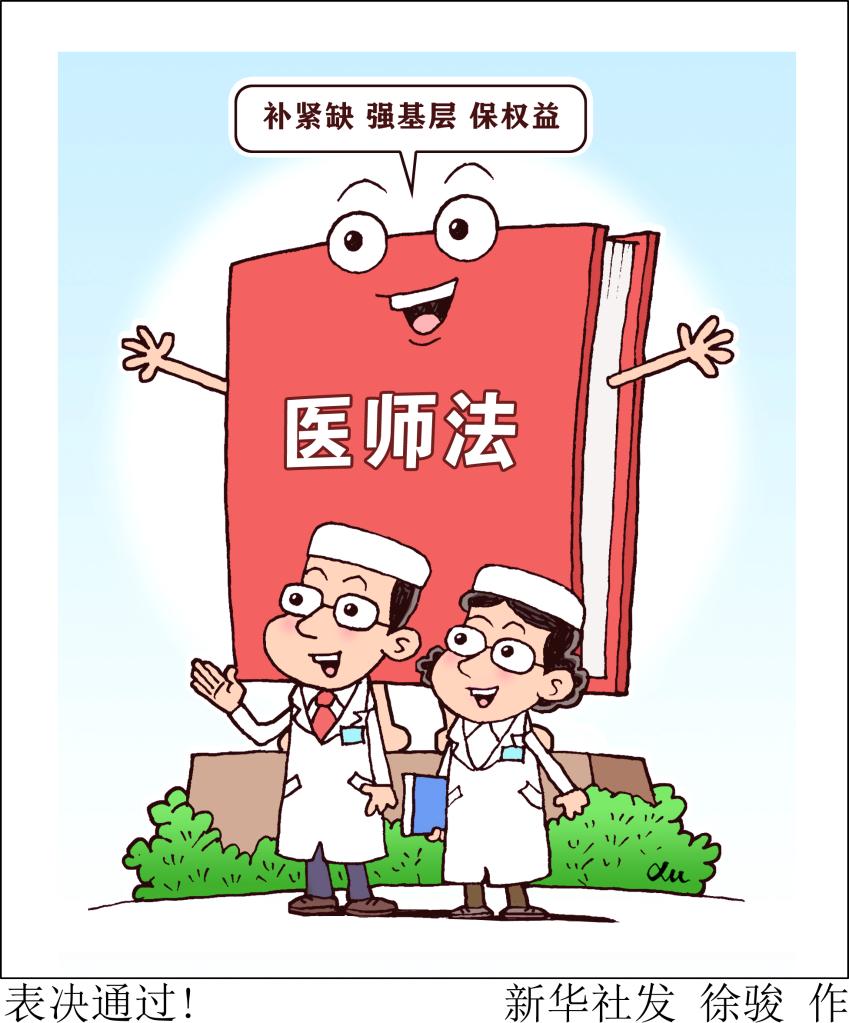 醫(yī)師是護(hù)佑人民健康的守門(mén)人。十三屆全國(guó)人大常委會(huì)第三十次會(huì)議2021年8月20日表決通過(guò)的醫(yī)師法,于2022年3月1日起施行。新華社發(fā) 徐駿 作 “醫(yī)療衛(wèi)生機(jī)構(gòu)應(yīng)當(dāng)完善安全保衛(wèi)措施,維護(hù)良好的醫(yī)療秩序,及時(shí)主動(dòng)化解醫(yī)療糾紛,保障醫(yī)師執(zhí)業(yè)安全”“禁止任何組織或者個(gè)人阻礙醫(yī)師依法執(zhí)業(yè),干擾醫(yī)師正常工作、生活”“禁止通過(guò)侮辱、誹謗、威脅、毆打等方式,侵犯醫(yī)師的人格尊嚴(yán)、人身安全”等法條被寫(xiě)入醫(yī)師法,從法律制度層面完善醫(yī)師執(zhí)業(yè)安全保障、促進(jìn)醫(yī)患和諧。 醫(yī)師法明確,縣級(jí)以上人民政府及其有關(guān)部門(mén)應(yīng)當(dāng)將醫(yī)療糾紛預(yù)防和處理工作納入社會(huì)治安綜合治理體系,加強(qiáng)醫(yī)療衛(wèi)生機(jī)構(gòu)及周邊治安綜合治理,維護(hù)醫(yī)療衛(wèi)生機(jī)構(gòu)良好的執(zhí)業(yè)環(huán)境,有效防范和依法打擊涉醫(yī)違法犯罪行為,保護(hù)醫(yī)患雙方合法權(quán)益。 中國(guó)醫(yī)師協(xié)會(huì)法律事務(wù)部有關(guān)專(zhuān)家表示,這一規(guī)定強(qiáng)化了刑法修正案(九)將“醫(yī)鬧”入刑的法律規(guī)定,對(duì)防止暴力傷醫(yī)、維護(hù)醫(yī)護(hù)人員執(zhí)業(yè)安全將起到十分重要的作用。 ?;颊邫?quán)益:完善醫(yī)師執(zhí)業(yè)規(guī)范制度 健康所系,性命相托。醫(yī)師職業(yè)直接與人民健康打交道,具有特殊性,在診療、用藥、手術(shù)等執(zhí)業(yè)關(guān)鍵環(huán)節(jié)來(lái)不得半點(diǎn)含糊。 醫(yī)師法針對(duì)醫(yī)生個(gè)體執(zhí)業(yè)行為和相關(guān)處罰進(jìn)行了系統(tǒng)性規(guī)范。明確了醫(yī)師在執(zhí)業(yè)活動(dòng)中的崗位權(quán)責(zé)義務(wù),切實(shí)保障患者權(quán)益。包括執(zhí)業(yè)道德、病人緊急救治、病情說(shuō)明與知情同意制度的遵循、合理用藥等方面。 在規(guī)范醫(yī)師用藥行為,保障患者用藥安全性、經(jīng)濟(jì)性方面,醫(yī)師法規(guī)定醫(yī)師應(yīng)當(dāng)堅(jiān)持安全有效、經(jīng)濟(jì)合理的用藥原則,遵循藥品臨床應(yīng)用指導(dǎo)原則、臨床診療指南和藥品說(shuō)明書(shū)等合理用藥。 為確保醫(yī)師救治能力水平不因精力分散受到影響,保障患者獲得高質(zhì)量診療服務(wù),針對(duì)醫(yī)師“多點(diǎn)執(zhí)業(yè)”,醫(yī)師法規(guī)定醫(yī)師在二個(gè)以上醫(yī)療衛(wèi)生機(jī)構(gòu)定期執(zhí)業(yè)的,應(yīng)當(dāng)以一個(gè)醫(yī)療衛(wèi)生機(jī)構(gòu)為主,并按照國(guó)家有關(guān)規(guī)定辦理相關(guān)手續(xù)。 針對(duì)醫(yī)師在搶救生命垂?;颊邥r(shí),卻不能及時(shí)取得患者或者其近親屬意見(jiàn)的緊急情況,醫(yī)師法規(guī)定經(jīng)醫(yī)療機(jī)構(gòu)負(fù)責(zé)人或者授權(quán)的負(fù)責(zé)人批準(zhǔn),醫(yī)師可以立即實(shí)施相應(yīng)的醫(yī)療措施。