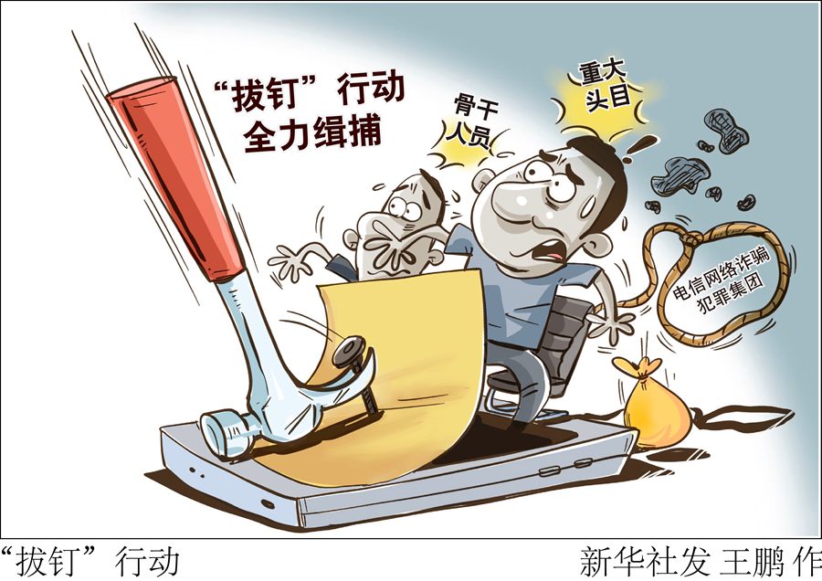 新華社北京6月9日電(記者熊豐)國務(wù)院打擊治理電信網(wǎng)絡(luò)新型違法犯罪工作部際聯(lián)席會議辦公室9日部署,在全國開展為期一年的“拔釘”行動,對電信網(wǎng)絡(luò)詐騙集團(tuán)重大頭目和骨干人員開展專項(xiàng)緝捕。