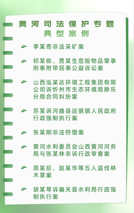 在3月9日“保護(hù)母親河日”之際,為深入貫徹黨的二十大精神,深入踐行習(xí)近平生態(tài)文明思想和習(xí)近平法治思想,在法治軌道上服務(wù)保障黃河流域生態(tài)保護(hù)和高質(zhì)量發(fā)展,忻州市中級(jí)人民法院現(xiàn)將八個(gè)黃河司法保護(hù)專題典型案例予以發(fā)布。這批案例涉及黃河及汾河環(huán)境資源審判刑事、民事、行政及公益訴訟等多個(gè)領(lǐng)域,集中體現(xiàn)了忻州市兩級(jí)法院環(huán)境資源審判的鮮明特色和職能作用,全面展示了忻州法院以最嚴(yán)格制度最嚴(yán)密法治保護(hù)黃河生態(tài)環(huán)境的擔(dān)當(dāng)作為。