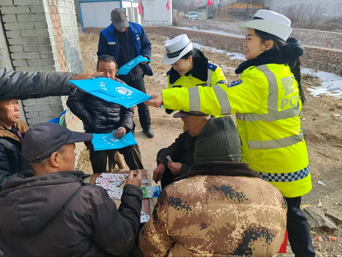 1月29日,五臺縣公安局交管大隊(duì)綜合中隊(duì)宣傳民輔警走進(jìn)國道338沿線東馬村、興鄭村,開展“平安春運(yùn) 交警同行”主題宣傳活動,將交通安全知識送到田間地頭、農(nóng)家院落,為即將到來的春運(yùn)保駕護(hù)航。
