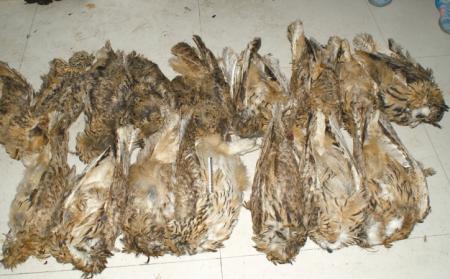 7個(gè)熊頭,其中3個(gè)已經(jīng)燙掉毛皮;大小熊掌共計(jì)11只;3個(gè)鱷魚掌;一堆鷹類尸體……地上的珍稀動(dòng)物死體幾乎壘成一座小山,而這只是本案中起獲的動(dòng)物死體的一部分。