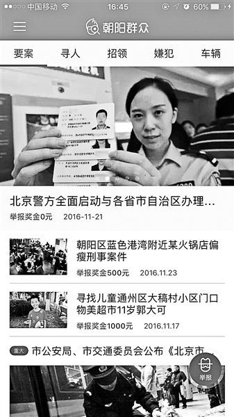 得益于有著“世界王牌情報組織”之稱的北京朝陽群眾,APP“朝陽群眾HD”剛一上線,便引發(fā)眾多網(wǎng)友關(guān)注。