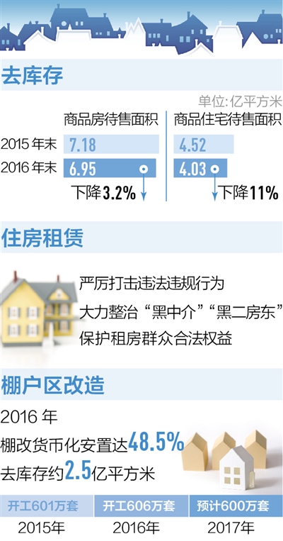 棚戶區(qū)改造是重大的民生工程。2015年、2016年,全國棚改分別開工了601萬套、606萬套,今年的計(jì)劃目標(biāo)是600萬套。陳政高介紹,今年中央棚改補(bǔ)助資金已經(jīng)有了安排,比去年有所提高,“今年還要進(jìn)一步推進(jìn)棚改貨幣化安置,特別是在三四線城市和縣城,要大幅度提高比例,加快棚改進(jìn)度、減少重復(fù)建設(shè)?!?/p>