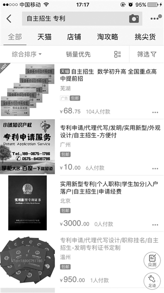針對(duì)高校自主招生 網(wǎng)上有人買賣專利
