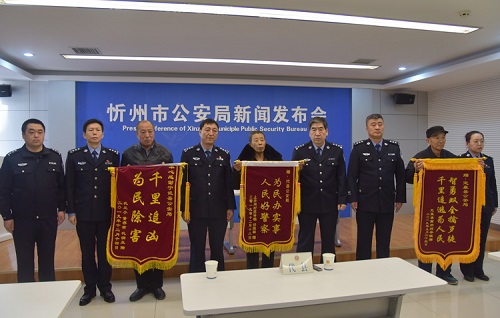 12月19日上午,忻州市公安局在三樓新聞發(fā)布室召開新聞發(fā)布會(huì),市公安局副局長張振富同志向各新聞媒體通報(bào)了2019年以來我市開展追逃工作的有關(guān)情況。會(huì)議由市公安局黨委委員、政治部主任呂建軍主持。山西日報(bào)、山西晚報(bào)、山西法制報(bào)、山西青年報(bào)等多家駐忻媒體,忻州日報(bào)、忻州電視臺、忻州網(wǎng)等我市新聞媒體記者應(yīng)邀參加發(fā)布會(huì)。定襄縣、代縣、寧武縣公安局追逃民警代表及三位受害者家屬參加了發(fā)布會(huì),并現(xiàn)場向公安機(jī)關(guān)贈(zèng)送了錦旗,表達(dá)謝意。