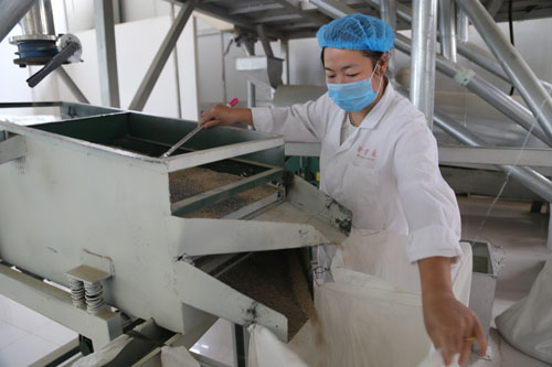 7月22日,靜樂縣華青藜麥產(chǎn)品開發(fā)有限公司的員工在篩選藜麥產(chǎn)品。這個(gè)綜合性農(nóng)業(yè)開發(fā)企業(yè),堅(jiān)持走“企業(yè)管理+種植基地”的運(yùn)作模式,積極推動(dòng)藜麥、小雜糧等規(guī)模化種植經(jīng)營,成為當(dāng)?shù)貛ьI(lǐng)農(nóng)民致富的龍頭企業(yè)。(閆曉梅 攝)