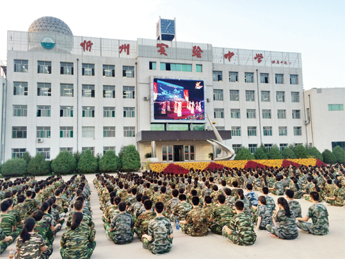 近期,我市高中陸續(xù)組織開展新生軍訓工作,旨在通過軍事化的訓練培養(yǎng)和增強學生國防意識、集體意識,并進一步錘煉意志,增強體質,為高中三年的學習生活打下堅實基礎。圖為八月二十一日,忻州市實驗中學新生在軍訓間隙觀看學校宣傳片。(實習記者 郭浩東 攝)