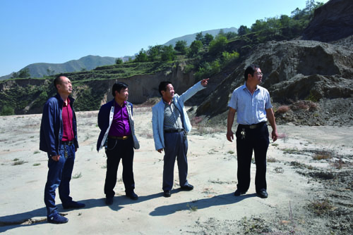 村支部何計所與鎮(zhèn)領(lǐng)導(dǎo)檢查填溝造地工程。