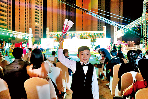 月光皎潔,清輝遍灑,這夜雖是農(nóng)歷八月十三,月亮卻已迫不及待地圓了起來(lái)?;ê迷聢A、春花秋月、花前月下……月宮是神話中的仙境,而此時(shí)泛華酒店的后花園里也如仙境一般,琴、詩(shī)、書(shū)法共同演繹《春江花月夜》,讓現(xiàn)場(chǎng)的500余名觀眾如癡如醉。面容清秀、刺繡大紅旗袍在身的琴師端坐在舞臺(tái)的左側(cè),雙手拂動(dòng),琴聲綿綿,舒心悅耳;鋪紙、執(zhí)筆、蘸墨、揮毫,舞臺(tái)中央的呂峰仿佛置身自家書(shū)房之中,墨香中三幅書(shū)法作品轉(zhuǎn)瞬完成;“醉眼看世界,朦朧看人生……李白醉了,醉了!”舞臺(tái)右側(cè)的朗誦者孫美琴將李白的一生揉碎在他的詩(shī)中,就著朦朧的月色,用獨(dú)特的聲線摻在她的情感中,沉醉了自己,也迷醉了觀眾。
