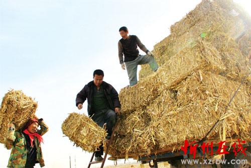 11月19日,定襄縣宏道鎮(zhèn),大型秸稈打捆機(jī)正在無畏莊村農(nóng)田里進(jìn)行秸稈打捆,兩臺農(nóng)運車運輸,每捆4元銷售給河邊10萬千瓦風(fēng)電場,既得利益又環(huán)保又防火災(zāi),一舉三得。據(jù)了解,宏道鎮(zhèn)該臺打捆機(jī)是河邊10萬千瓦風(fēng)電場無償提供的,與本鎮(zhèn)大型拖拉機(jī)配套,實施秸稈打捆1個多月,已經(jīng)將1000多畝農(nóng)田的秸稈打捆,讓農(nóng)民的廢秸稈也賺錢,實現(xiàn)了防火、環(huán)保、秸稈再利用。圖為工作人員將捆好的秸稈裝車。(吉建平 攝)