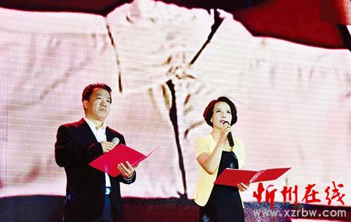 圖為孫美琴和朗誦名家焦陽(yáng)一起朗誦