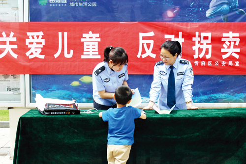 本報(bào)訊 近日,為進(jìn)一步提高人民群眾特別是廣大少年兒童的防拐意識(shí)和防拐能力,忻府區(qū)公安局刑偵大隊(duì)民警在體育廣場(chǎng)開展了以“關(guān)愛兒童、反對(duì)拐賣”為主題的打拐宣傳活動(dòng)。
