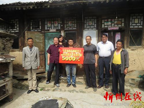 圖為代縣地稅局情暖學(xué)子,為定點(diǎn)扶貧村聶營鎮(zhèn)康上莊貧困大學(xué)生卜桂元捐贈助學(xué)金5000元,解了他全家的燃眉之急。(代縣地稅局李九龍 攝)