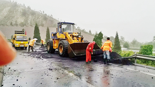 7月6日凌晨3點(diǎn),忻州高速公路養(yǎng)護(hù)工區(qū)接到忻州高速公路管理處電話通知:K654路段通往三家村收費(fèi)站互通匝道入口處,有一車(chē)輛側(cè)翻橫于路中拋撒煤面,影響了公路正常通行,需及時(shí)處置。養(yǎng)護(hù)工區(qū)接到通知后立即啟動(dòng)應(yīng)急預(yù)案,出動(dòng)搶險(xiǎn)人員9名、工具車(chē)一輛、皮卡車(chē)一輛、鏟車(chē)一臺(tái)、自卸汽車(chē)一臺(tái)火速趕往現(xiàn)場(chǎng)。搶險(xiǎn)人員冒著風(fēng)雨,按照標(biāo)準(zhǔn)設(shè)置了警示標(biāo)志,經(jīng)過(guò)三個(gè)多小時(shí)的緊張工作,清掃工作全部完成,路面恢復(fù)整潔暢通,保障了高速公路的安全通行。(任淑萍 攝)