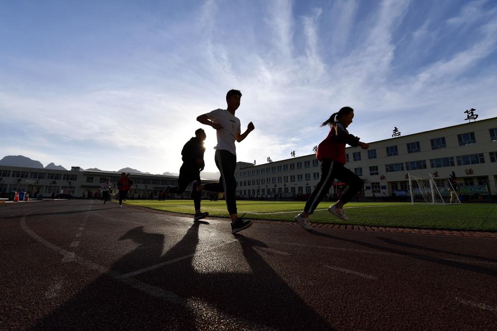 ↑這是學(xué)生們?cè)谂懿竭M(jìn)行體能訓(xùn)練(4月16日攝)。新華社記者詹彥攝