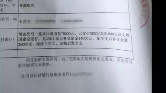東北一所高校的一位在讀博士生定制的博士論文。全文12萬(wàn)字,全款高達(dá)7萬(wàn)元,買(mǎi)家已經(jīng)支付了2萬(wàn)多元的訂金