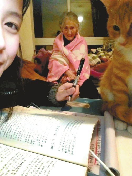 劉琳一邊上學(xué),一邊照顧著93歲的奶奶。