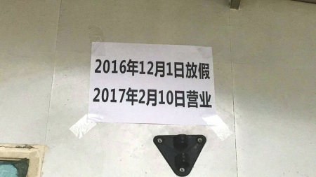 1月18日,路過(guò)成都錦江區(qū)中道街的市民楊先生發(fā)現(xiàn),平時(shí)生意爆滿的串串店關(guān)門(mén)了。在門(mén)口的墻上,貼著一張告示:2016年12月1日放假,2017年2月10日營(yíng)業(yè)。楊先生算了算,這個(gè)假期足足71天,讓人羨慕不已。