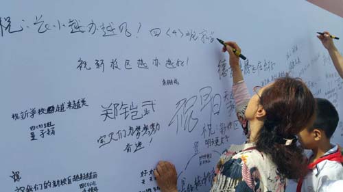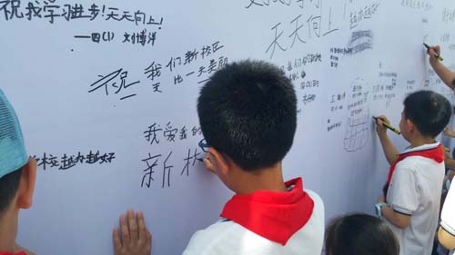 長征路小學(xué)黨支部書記湯永斌告訴記者:“組織學(xué)生、家長參觀新校區(qū),我們不僅是展示新校區(qū)優(yōu)美的環(huán)境,先進(jìn)的教學(xué)設(shè)施設(shè)備,培養(yǎng)師生熱愛新校區(qū),愛護(hù)新校區(qū)的情感, 更重要的是我們把綜合實(shí)踐課的課堂開到了新校區(qū),利用孩子們眼中所看到的新校區(qū),來激發(fā)學(xué)生的創(chuàng)作靈感,拓展他們的想象力,從而提高學(xué)生繪畫、書法、攝影、寫作的能力和水平。并表示:“長征路小學(xué)將以此次搬遷為契機(jī),繼續(xù)秉承學(xué)校優(yōu)良辦學(xué)傳統(tǒng),努力建設(shè)具有“一流硬件設(shè)施,一流師資隊(duì)伍,一流教育管理,一流辦學(xué)特色,一流教學(xué)質(zhì)量”的“五個一流”學(xué)校。把新長小創(chuàng)辦成一所學(xué)生樂學(xué)、教師幸福、家長滿意的學(xué)校,讓這塊全市小學(xué)教育的金字招牌熠熠生輝,為忻州優(yōu)質(zhì)、均衡教育發(fā)展作出重大的貢獻(xiàn)?!保ê路郑?/p>