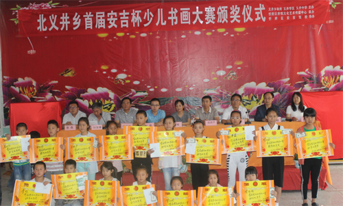 6月5日上午,忻府區(qū)義井中學(xué)校園內(nèi)歌聲飄揚(yáng),掌聲陣陣。有北義井鄉(xiāng)政府、北義井學(xué)區(qū)、義井中學(xué)主辦,忻州市忻府區(qū)井恒文化藝術(shù)傳媒中心策劃、承辦,忻州市安吉駕校協(xié)辦、贊助的北義井鄉(xiāng)首屆“安吉杯”少兒書畫大賽頒獎(jiǎng)儀式在這里隆重舉行。來自全鄉(xiāng)各校的校長、獲獎(jiǎng)學(xué)生及家長和政府領(lǐng)導(dǎo)共160多人參加了活動(dòng)。