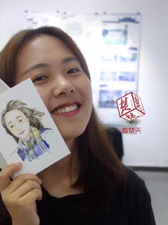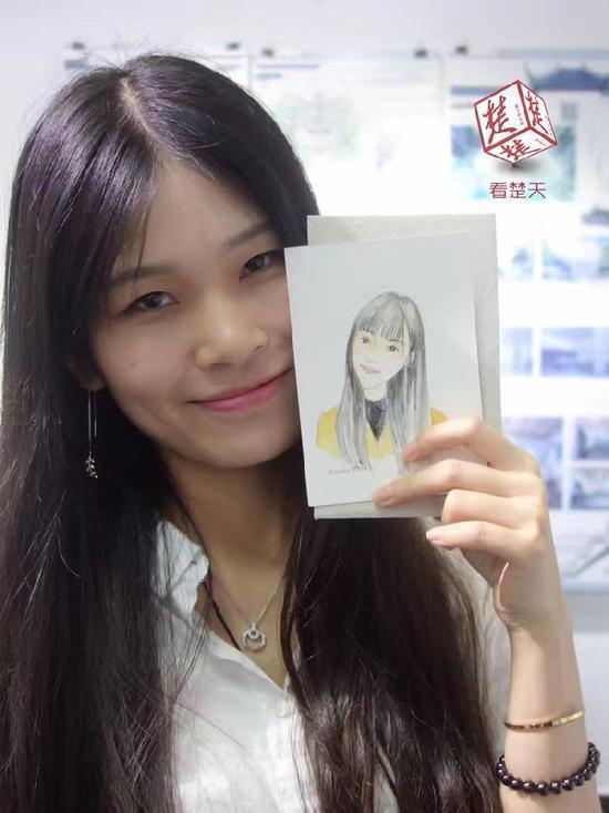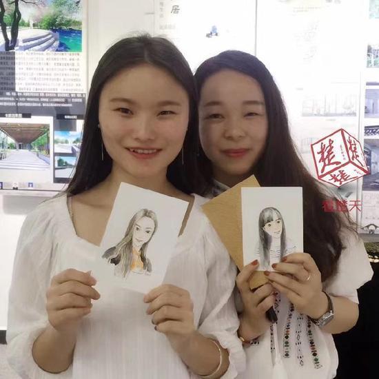 大大的眼睛、長長的頭發(fā),微微歪著腦袋,一個活潑可愛的女孩形象躍然紙上,該班張馨云同學直呼:“和我真的太像了!”而這別出心裁的畢業(yè)禮全都出自該班授課教師范晶晶之手。