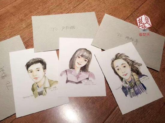 近日,該班學生順利結(jié)束畢業(yè)答辯,范晶晶給班上每位同學送出了由自己親手繪制的水彩明信片,明信片正面是她為每個學生手繪的人物肖像,反面則是她親手寫上的昵稱和對學生的祝福。