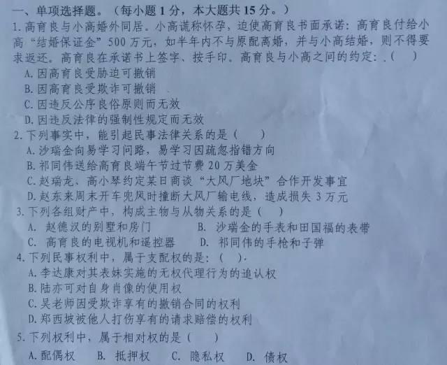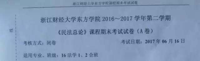 昨天,浙江財經(jīng)大學(xué)東方學(xué)院法學(xué)專業(yè)的學(xué)生就碰上了“萬一”——《民法總論》的期末考試試卷,竟通篇引用《人民的名義》!??!